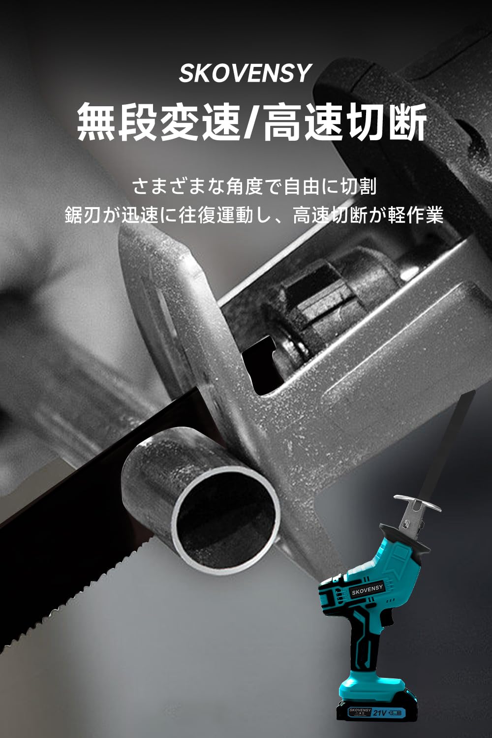 【多様な作業に優れたレシプロソー】 軽量なレシプロソーは、高い切断効率を提供し、造園やガーデニングなどさまざまな作業に適しています。手にフィットし、片手で簡単に操作できる使い勝手の良さが特徴で、家庭の修理、金属加工工場、木工など様々な分野で広く活躍します。通常は木材、プラスチック、金属などの材料の切断作業に使用され、家具の制作、パイプの切断、木の剪定など、多くのタスクに広く適用されています。このレシプロソーは、多岐にわたるシーンで優れた性能を発揮します。