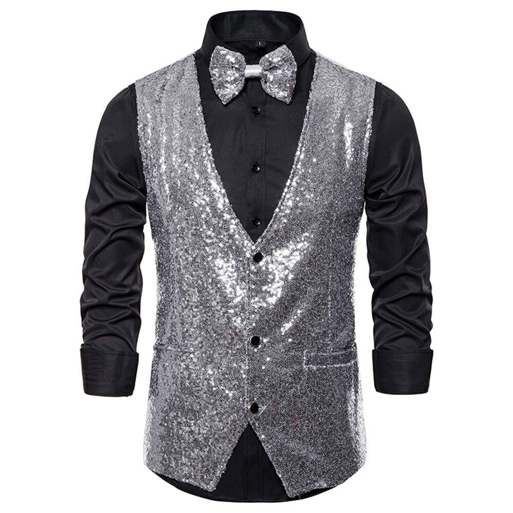 maxer【9色5サイズ】スパンコールベスト大人 ダンス衣装 蝶ネクタイとの2点セット HIPHOP 余興 衣装 スパンコール ベスト 舞台衣装 ステージ衣装 カラオケ衣装 キラキラ ベスト 忘年会 新年会 ヒップホップ 赤黄青紫銀黒