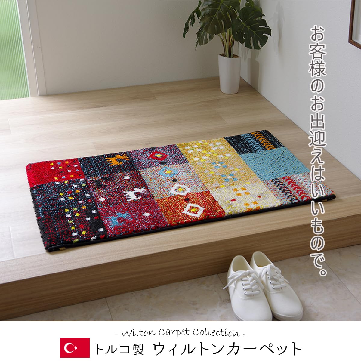 イケヒコ 玄関 選べる マット ラグ ウィルトン トルコ フォリア 約50×80cm レッド ギャベ柄 抗菌防臭 消臭機能 へたりにくい #2042539