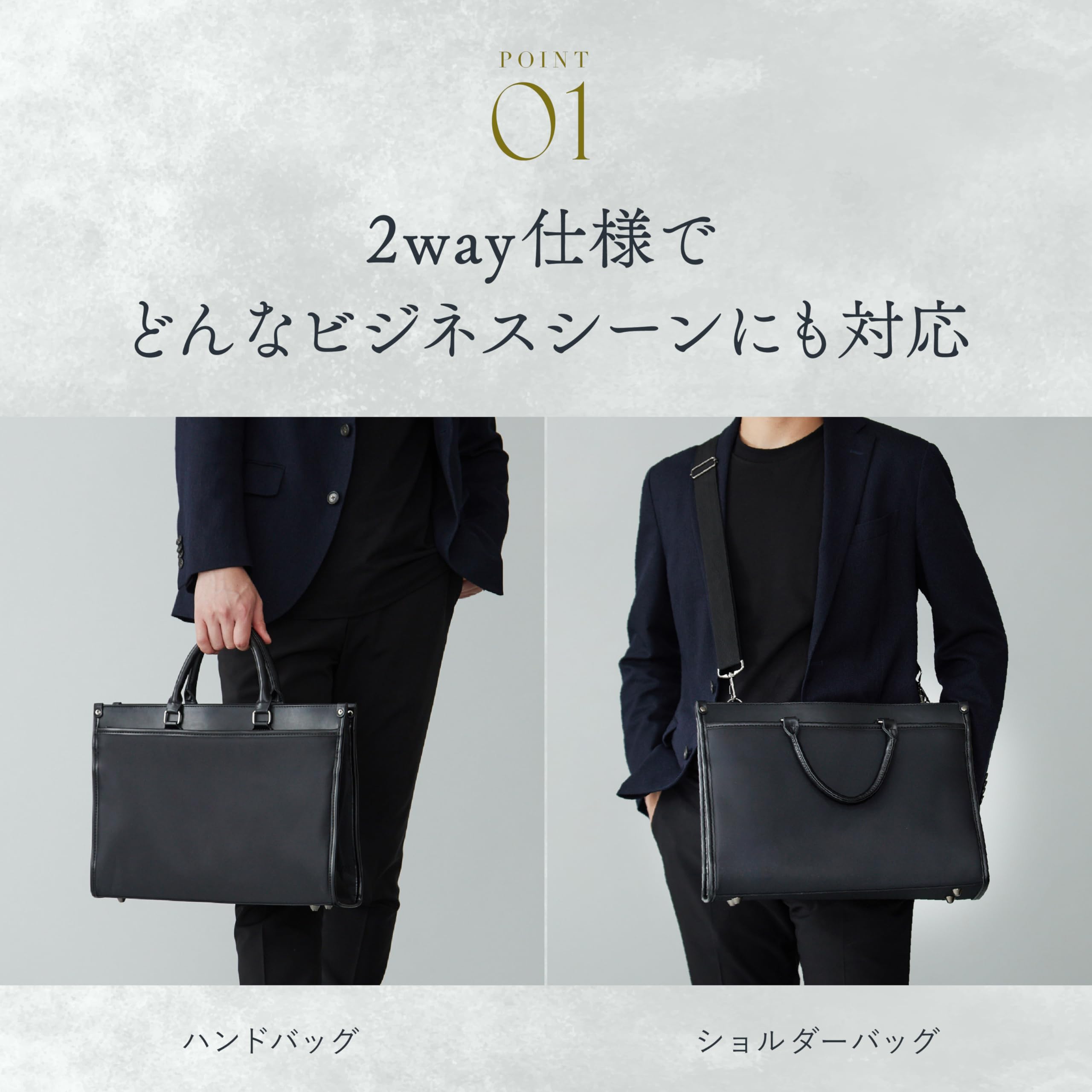 1. 第一印象で差がつく、洗練デザイン スーツに自然に馴染む上品でスマートなフォルム。シンプルながら品格のある外観が、就活や初出社の場面で好印象を与えます。リクルートバッグとしても、ビジネスバッグとしても長く愛用できるデザインです。