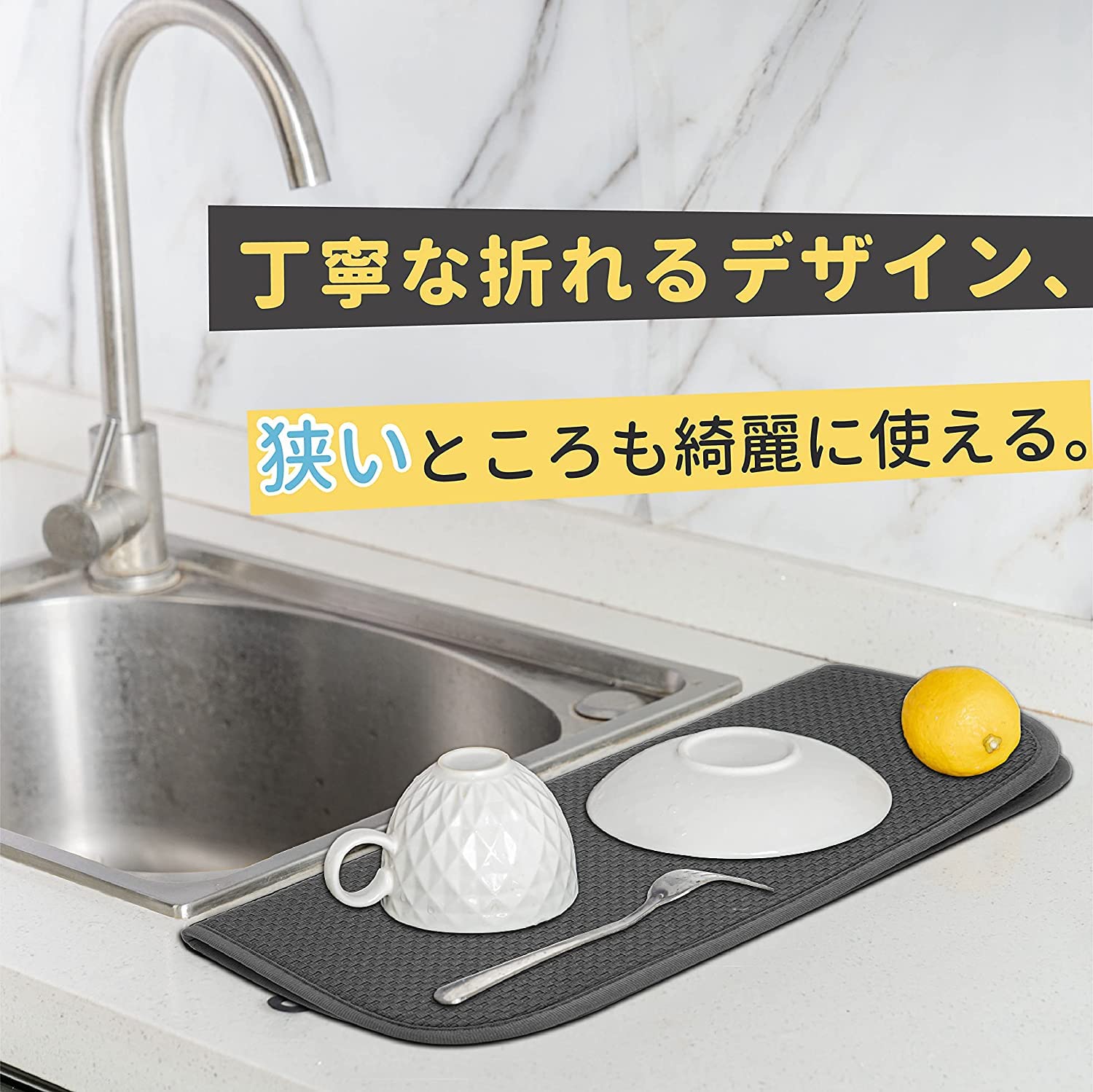 【便利&清潔】折りて・吊りて・丸めて 収納 できるので キッチン の限られたスペースを有効活用できます!使う時にサッと広げて 食器 を置きますし、丁寧な折り目デザインで狭いとこるも軽くて使えます。ちょうどいい厚みで絞り安いです、手洗い・洗濯機 もご使用できますので、繰り返し清潔に使える 水切りマット です!超吸水性と防音性のおかげで家事は楽になります。