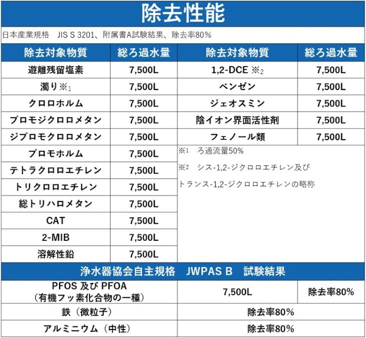 ●商品コード:MFH-S75 ●製品名:アクアセンチュリスマート ●材質の種類:本体(カバー、ベース)・切替コック:ABS樹脂、ホース:ポリエチレン ●ろ材の種類:活性炭、不織布、中空糸膜 ●ろ材以外の封入材料:サンゴ未焼成カルシウム(コーラルサンド)●ろ過流量:3.0L/分 ● 使用可能な最小動水圧:0.05MPa ●毎朝の放流時間:20秒 ●ろ材の交換時期:1年(1日20L使用の場合) 注)浄水能力の短い物質を基準とする ●許容温水温度:~50℃ サイズ ●幅11×奥行11×高さ22cm ● 重量:約1.1kg(満水時2.0kg) ● 付属品:切替コック、取付用付属品、取扱説明書 ●生産国:日本