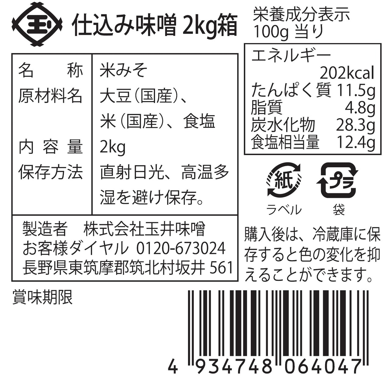 マルサン 信州玉井味噌 限定仕込み味噌 (詰め替え用 簡易包装) 2kg