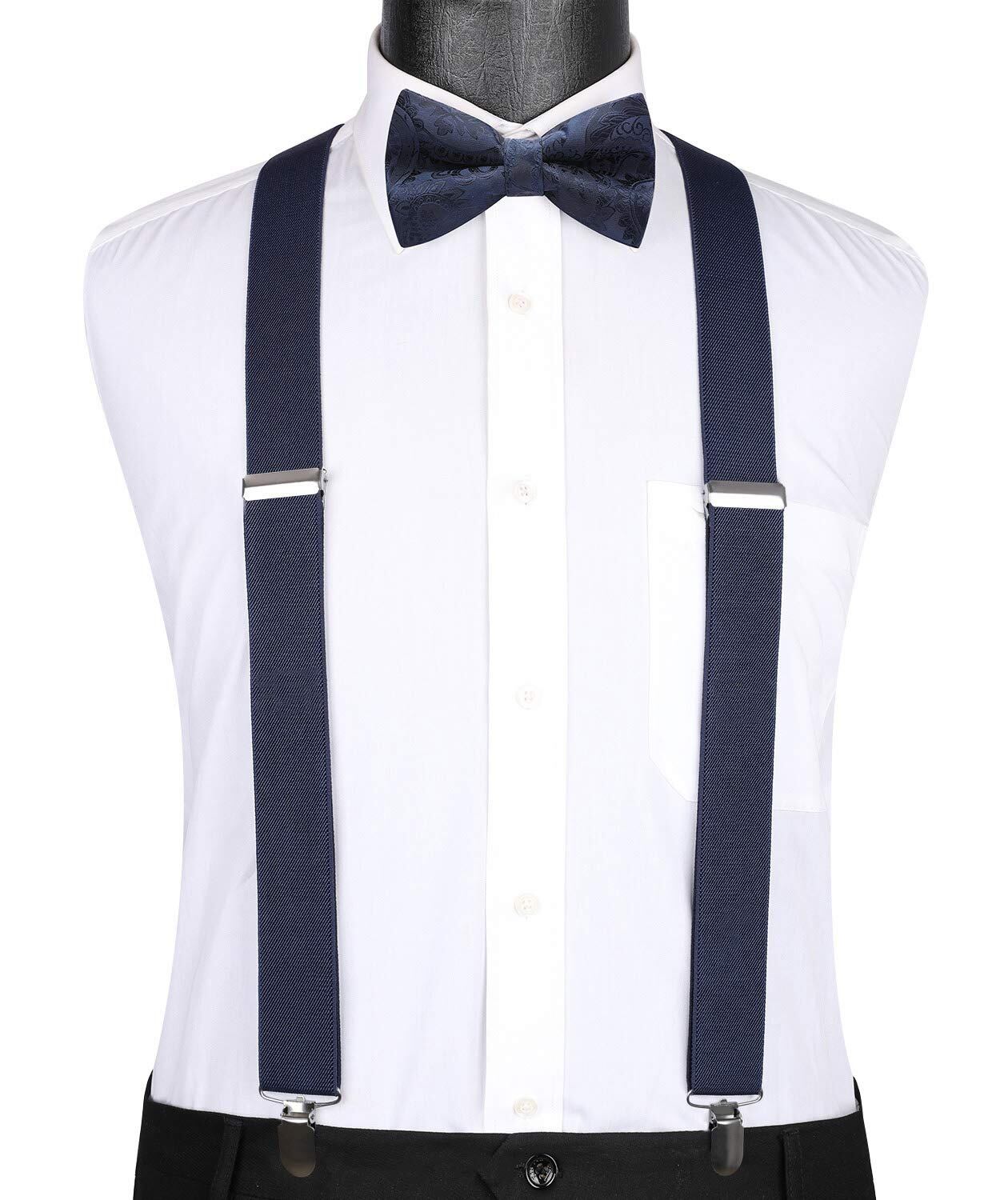 [HISDERN] X3-01 サスペンダー 蝶ネクタイ チーフ 3点セット X型/Y型 35mm幅 おしゃれ調節可能 錆びない 男女兼用 ズボン吊り おしゃれ カジュアル パーテイー