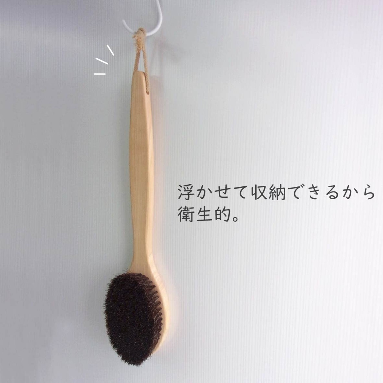 オーエ ボディ ブラシ 木目 約縦35×横7.5×高さ4cm 天然木 品質主義 ヒノキ 馬毛 体洗い 日本製 ブラウン