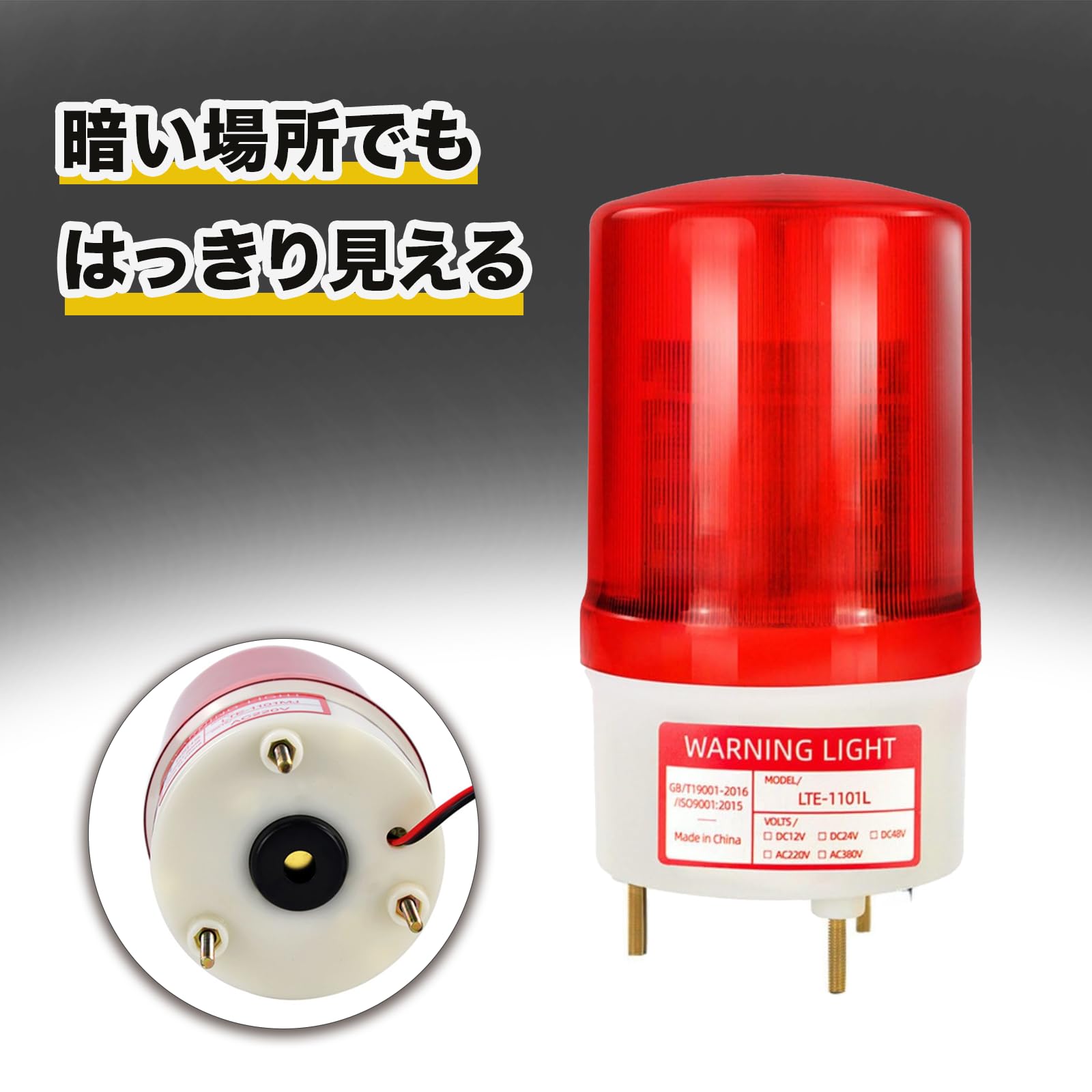 パトライト(patlite)仕様の高耐久設計で、せきしょくとうや非常灯、赤灯として幅広く活用できます。