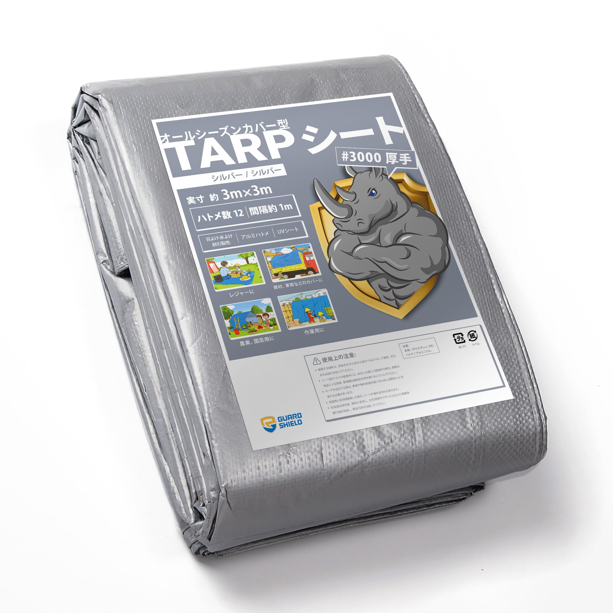 GUARD SHIELD シルバーシート #3000 厚手 ブルーシート 防水シート ハトメ付き 屋根 防水屋外 3mx3m UV ターポリン