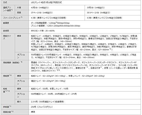 連続プリント速度: 43枚/分、550枚給紙トレイ、最大用紙サイズ: A4、4行LCDパネル