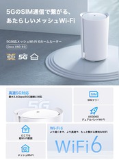 [特徴] 5G SIMカードでインターネットに繋がるメッシュWi-Fiシステム Deco X50-5G