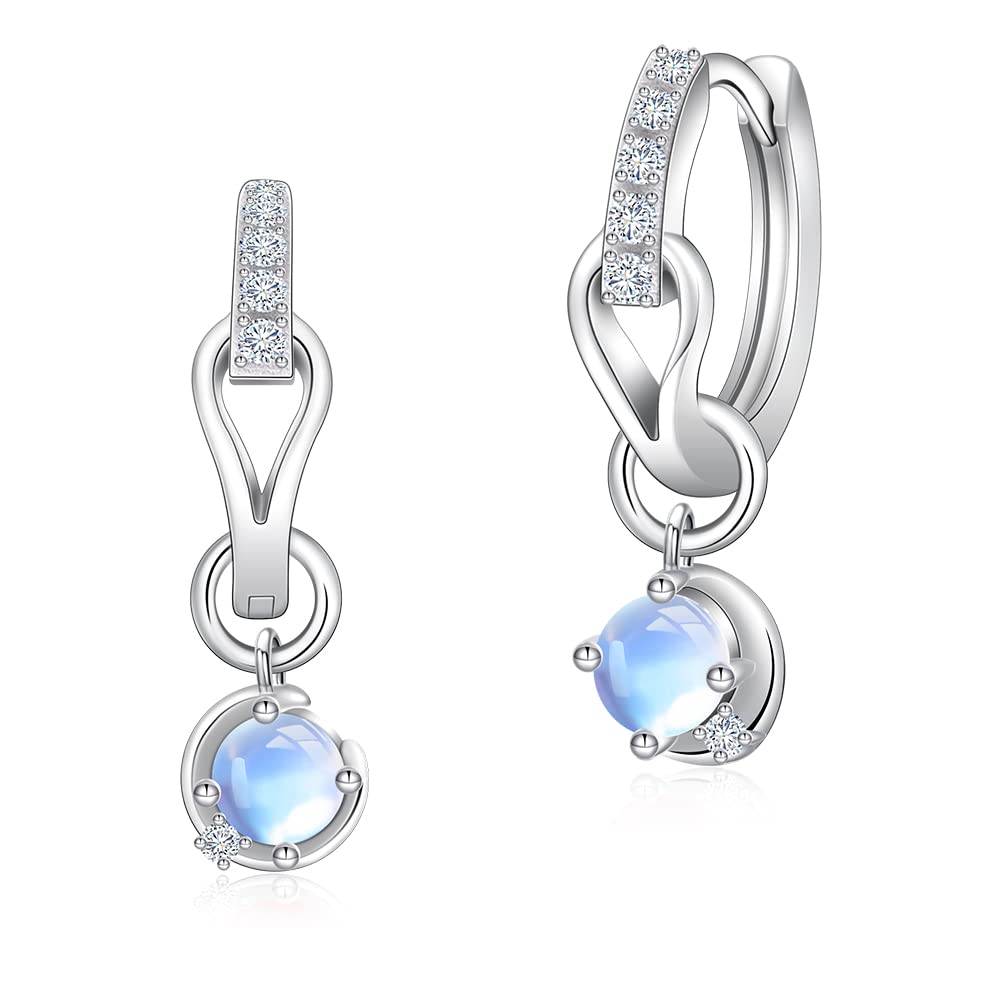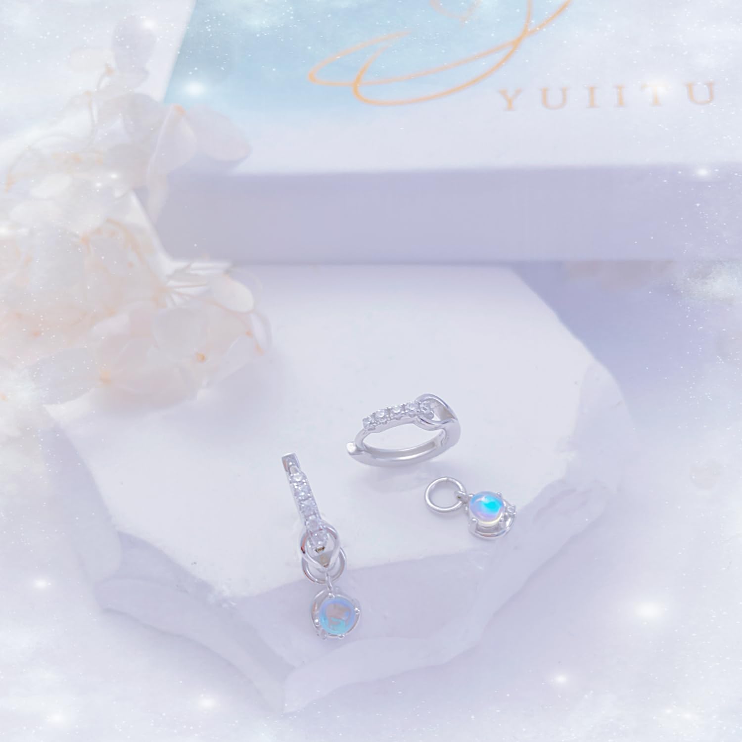 【2WAYのデザイン】ピアスレディース人気は流線型の透かし彫りで大人っぽくスタイリッシュ。ピアスには5つの輝く高級ムーンストーンを丹念にちりばめ、ユニークでクリアなグラデーションブルーの輝きを演出して、神秘的でロマンチックな雰囲気です。ピアスのドロップは三日月型で、流麗な曲線は中心にきらめく主石を囲んで、そばに1粒の小石が飾って、月明かりの下で舞っているような美人、一目見ただけで忘れられない。人気な2WAYピアスは普段の好みや出入りに合わせて、フォーマルな場ではきらめく揺れるピアス、カジュアルや通勤にも使えるシンプルなフープピアス。ピアスはフィット度が高いので、ワンピースにもカジュアルにも合わせられ、君が登場すると主役になります。YUIITUジュエリーはあなたが自分の独特な魅力を持って、その唯一の愛を収獲することを望みます。