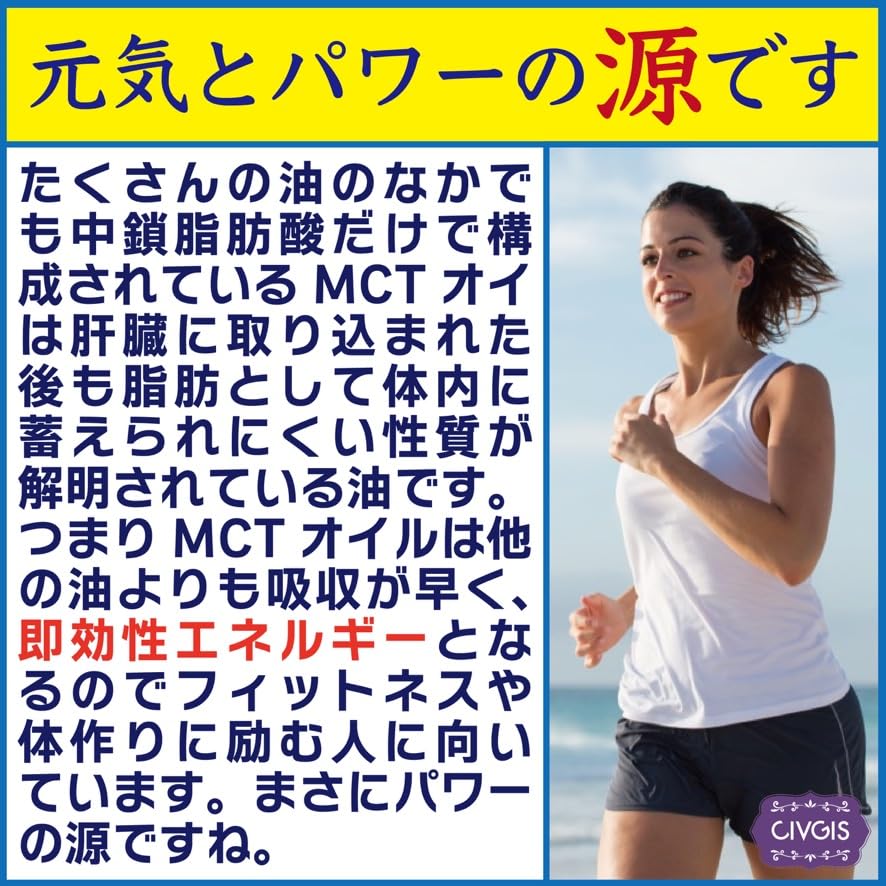 【おしゃれなMCTライフ】MCTオイルはあなたのケトジェニックライフを応援します。バターコーヒーやMCT豆乳、サラダドレッシングに混ぜたりMCTヨーグルトを作ったり、マヨネーズに混ぜたりと様々な使い方が可能です。ご使用の際には小さじ一杯5mlから大さじ一杯15ml程度を個人の体格や体調に合わせてお使い下さい。