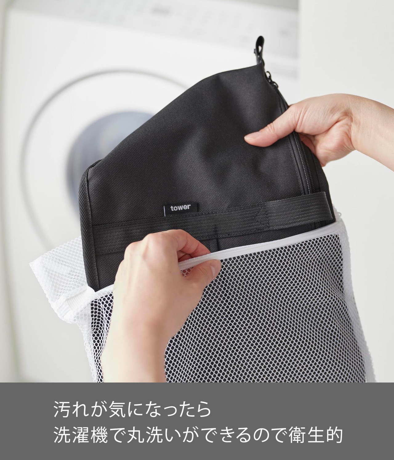 山崎実業(Yamazaki) スーパー・コンビニ弁当がそのまま入る 洗える お弁当バッグ ブラック W51×D25×H18cm(持ち手含まず) タワー tower ランチバッグ 保温 保冷 洗濯OK 折り畳み 1940 | kor Cat*