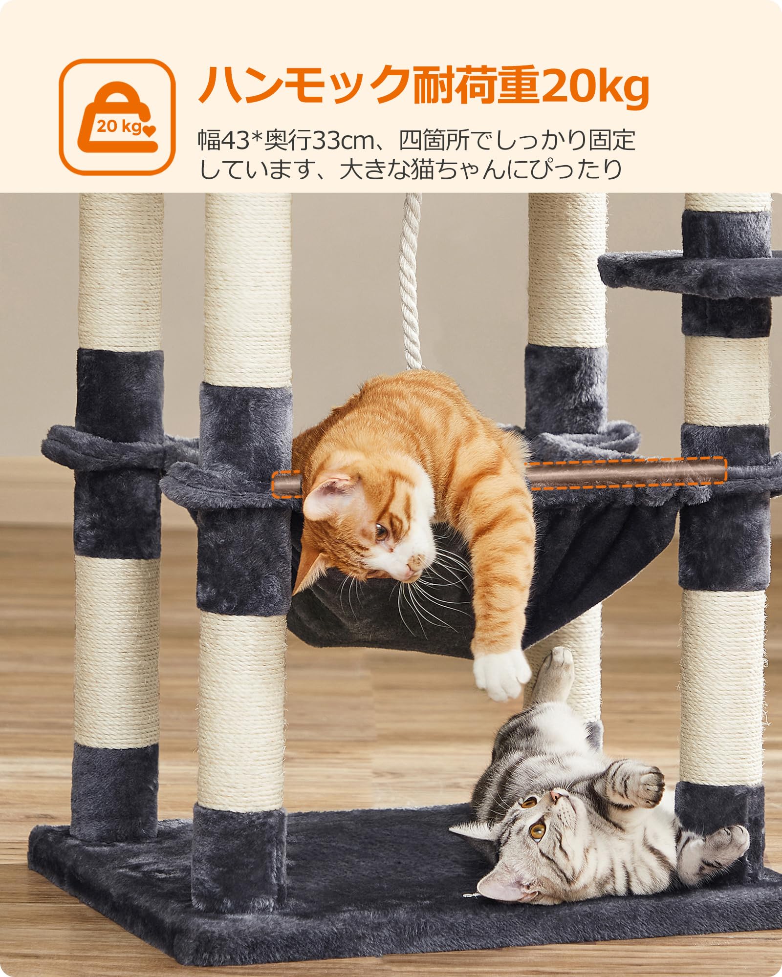 FEANDREA キャットタワー 大型猫 据え置き 猫タワー 多頭飼い 大型ハンモック耐荷重20kg 高さ143CM PCT15GYZ