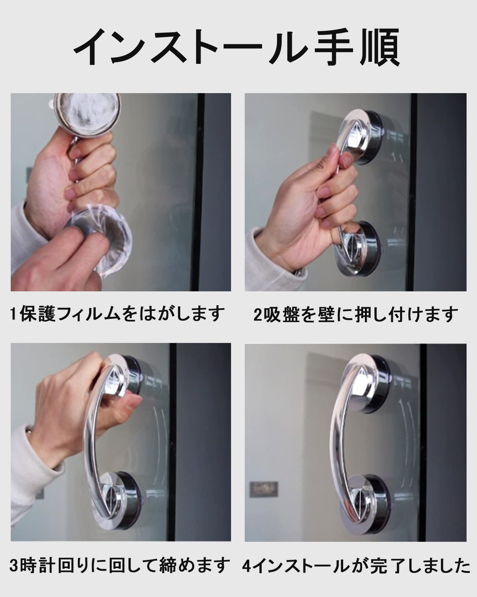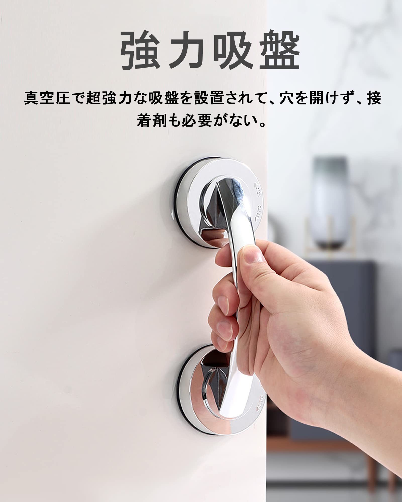 2個セット 吸盤 手すりドアハンドル 強力吸盤 介護セーフティ マルチグリップ 取っ手 シルバー お風呂/高齢者/滑り止め/窓ガラス