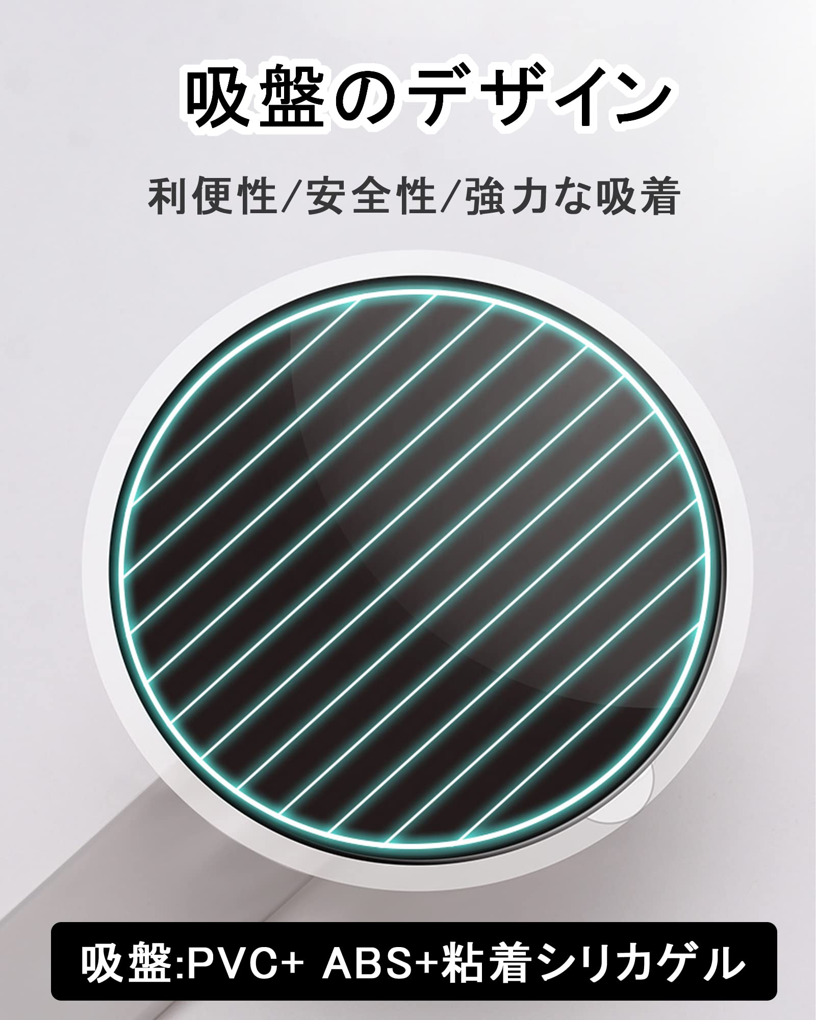 【穴を開けなく】吸盤设计:真空圧で超強力な吸盤を設置されて、穴を開けず、接着剤も必要がない、壁の表面に置いて押して数秒でインストールして、設置終了しました。