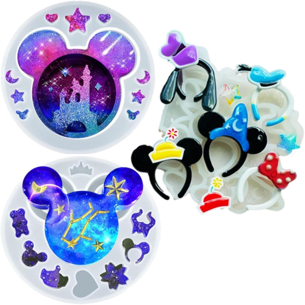 【商品について】かわいいネズミのカチューシャモチーフとリボン等の様々な帽子、ハートや星・桜・お城のパーツやネズミのシャカシャカネコが作れるシリコンモールド3個セットです。 キーホルダーやアクセサリーパーツにもピッタリ プレゼントにも最適です。鏡面仕上げでツルツルの綺麗な作品が作れます。半透明でデザインも確認しやすい高品質なシリコンモールドです。丈夫で柔らかく取り出しやすく、初心者の方でも簡単に取り外せます、 UVレジン、エポキシ樹脂、樹脂粘土などにご利用いただけます。
