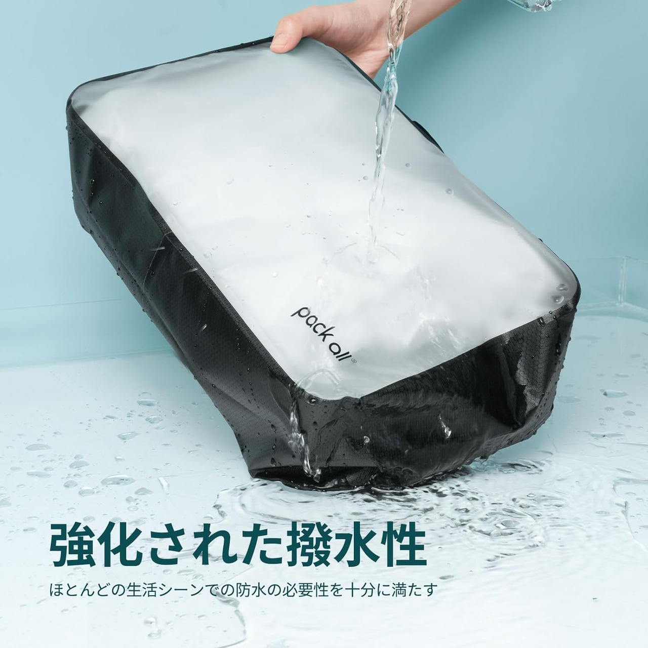 pack all トラベルポーチ 半透明TPU素材 ナカ見え シームレス 出張 トイレタリーバッグ 持ち運び 衣類収納 撥水加工 アウトドア コスメポーチ 登山 水泳 ガジェットポーチ(L)