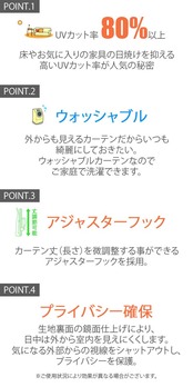 組成:ポリエステル100%、ウォッシャブル、1.5倍ヒダ、アジャスターフック、UVカット