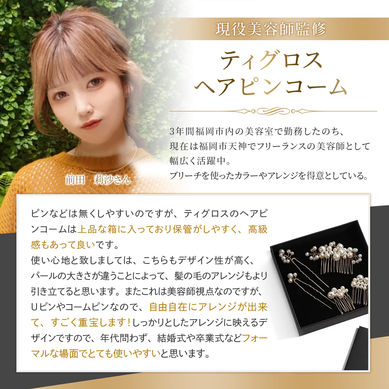 [ティグロス] TIGLOSS 美容師監修 髪飾り ヘッドドレス ヘアアクセサリー ヘアピン パール コーム ウェディング 専用BOX付