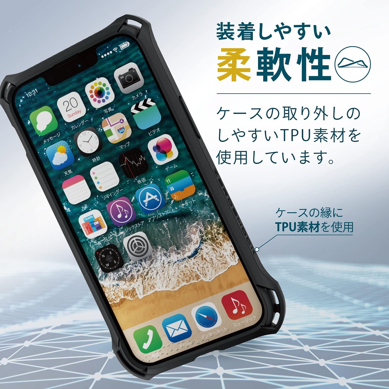 エレコム iPhone 13 mini/ハイブリッドケース/ZEROSHOCK/ブラック