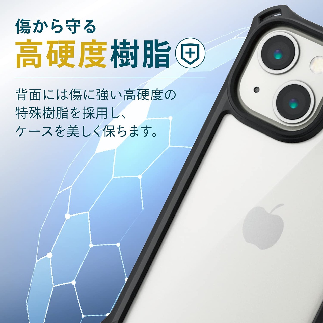 ■機器本体のカラーをそのまま活かせる背面クリアパネルに、6つの衝撃吸収構造を兼ね備えたiPhone 13 mini用ZEROSHOCKフレームケースです。 ■落下時に最も大きな衝撃が予想される四つ角にダンパーを設置し、効率的に衝撃を吸収します。 ■2種の素材を特殊成形し強じんな耐久性としなやかな弾力性を合わせ持ったハイブリッドケースです。 ■背面には高硬度の特殊樹脂を採用し、ケースを傷から保護します。機器本体のカラーをいかせるクリアタイプです。