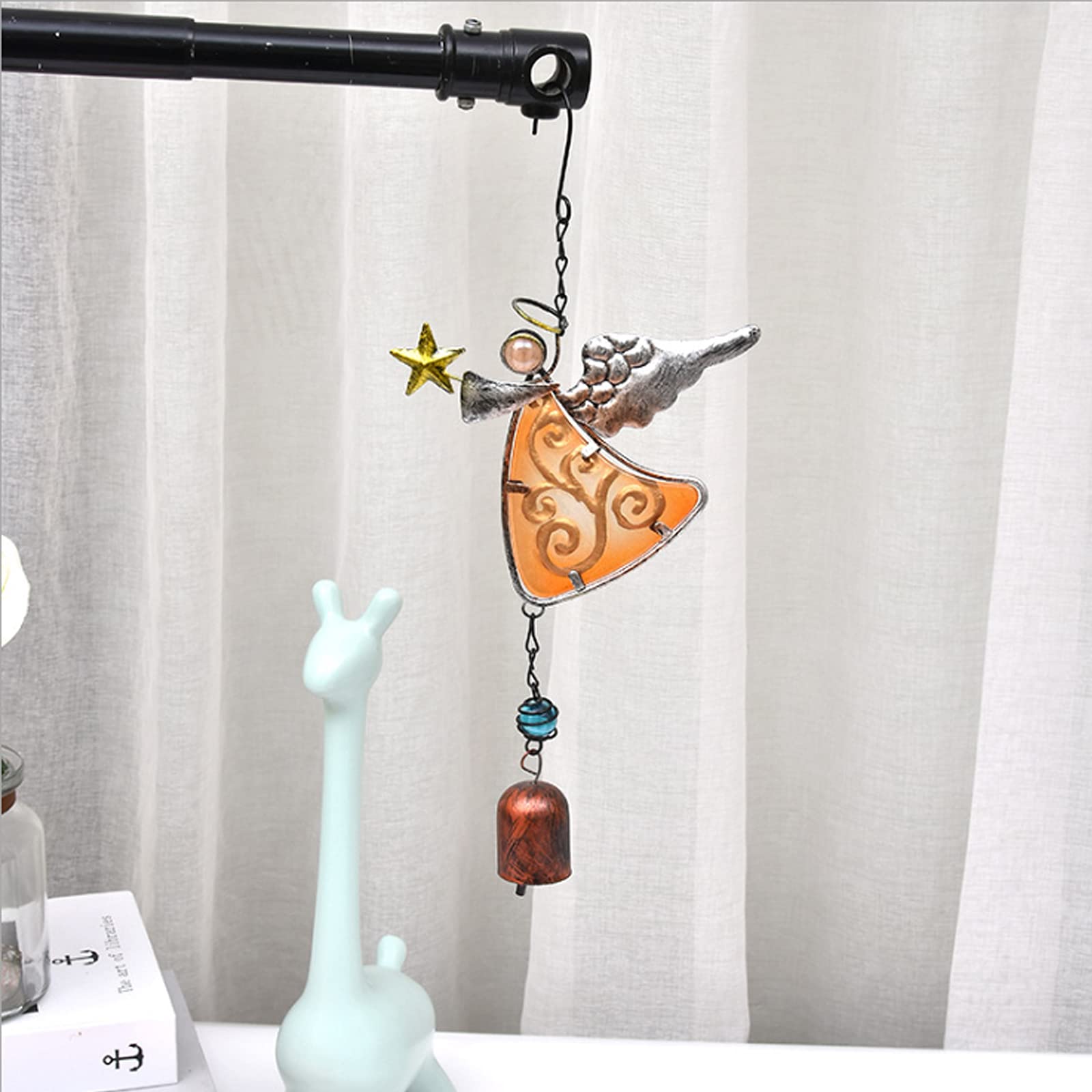 MrMrKura エンジェル 風鈴 天使風鈴 風鈴 玄関 ウインドチャイム金属 庭風鈴 屋外用 エンジェルウインドチャイム 工芸装飾用風鈴 インテリア 飾り 手作り風鈴 屋内吊り下げ装飾 (黄色)