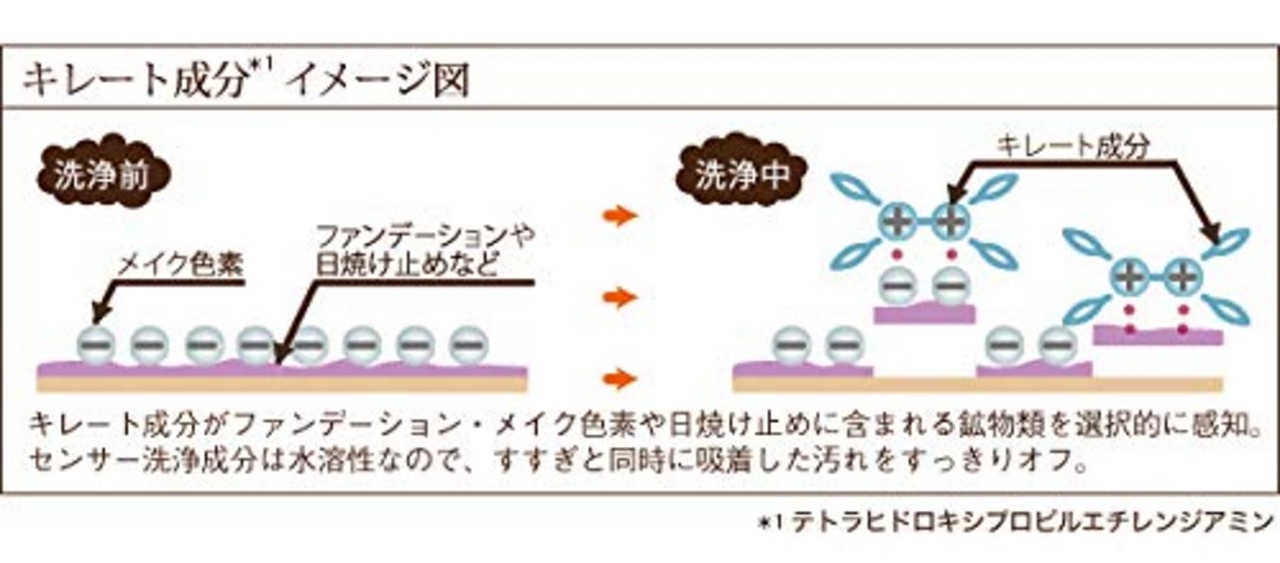 メイクも一度に落とせる泡状の洗顔料。メーク色素やファンデーションを選択して洗浄する キレート成分*1 により、メークと汚れを一度に落とします。特殊ポンプフォーマー採用することによりきめ細かい泡ができ、泡立て不足による肌への摩擦を軽減します。 ※無香料・無着色・無鉱物油・パラベンフリー・アルコールフリー・石油系界面活性剤フリー *1 テトラヒドロキシプロピルエチレンジアミン