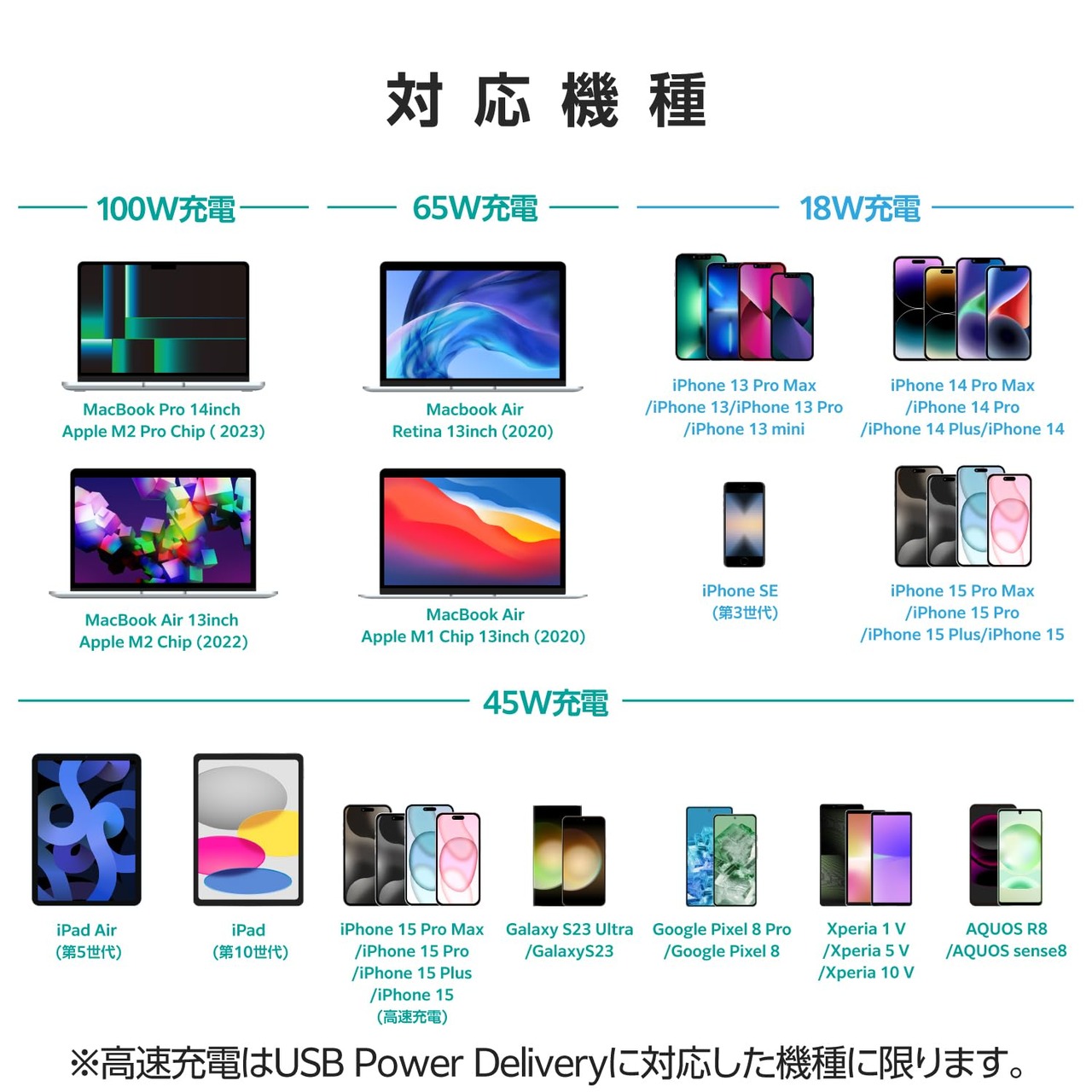 ※USB Power Delivery規格100Wまでで充電できる機器に限ります。