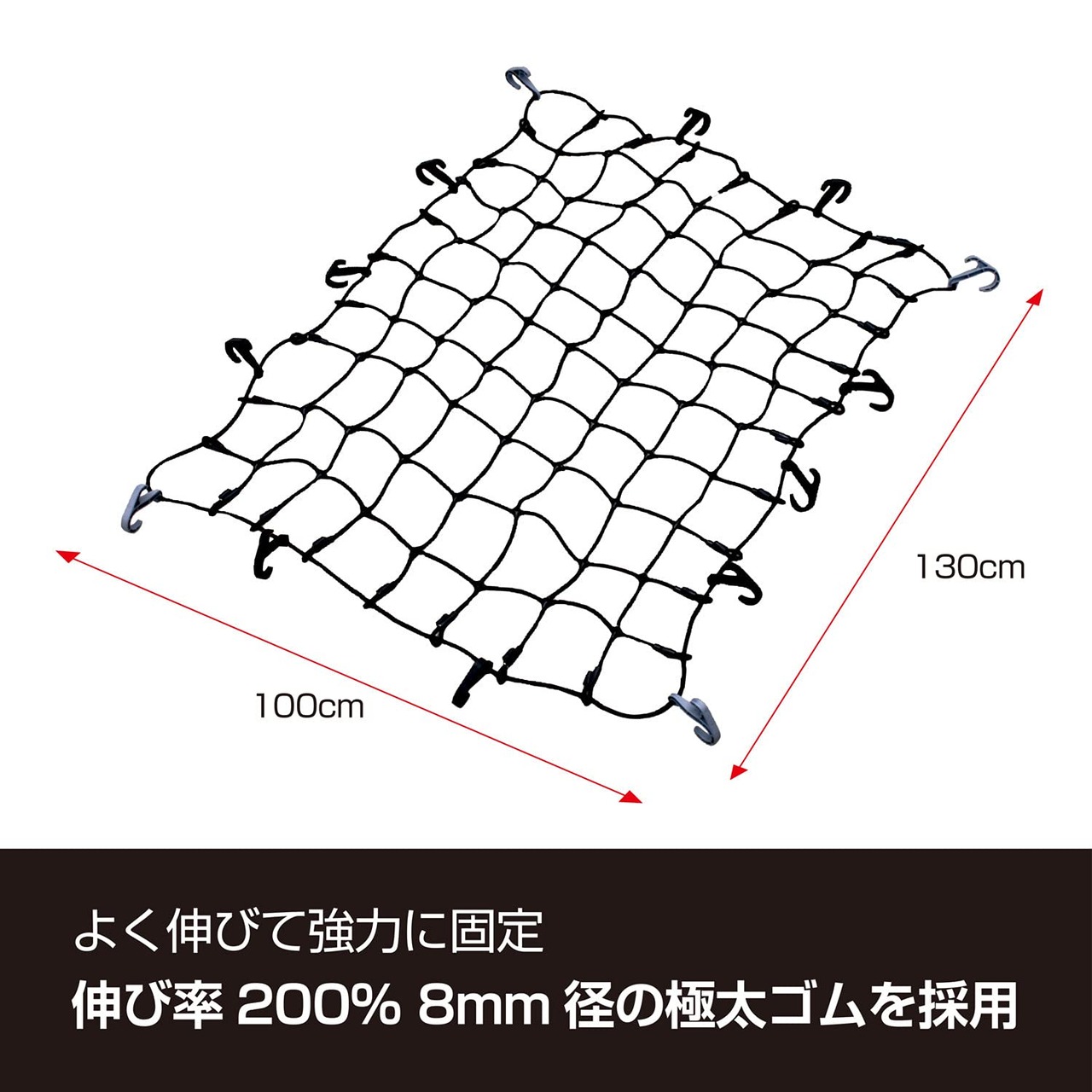 伸び率200%のよく伸びる8mm径の極太ゴムで、確実に固定できるネットです。
