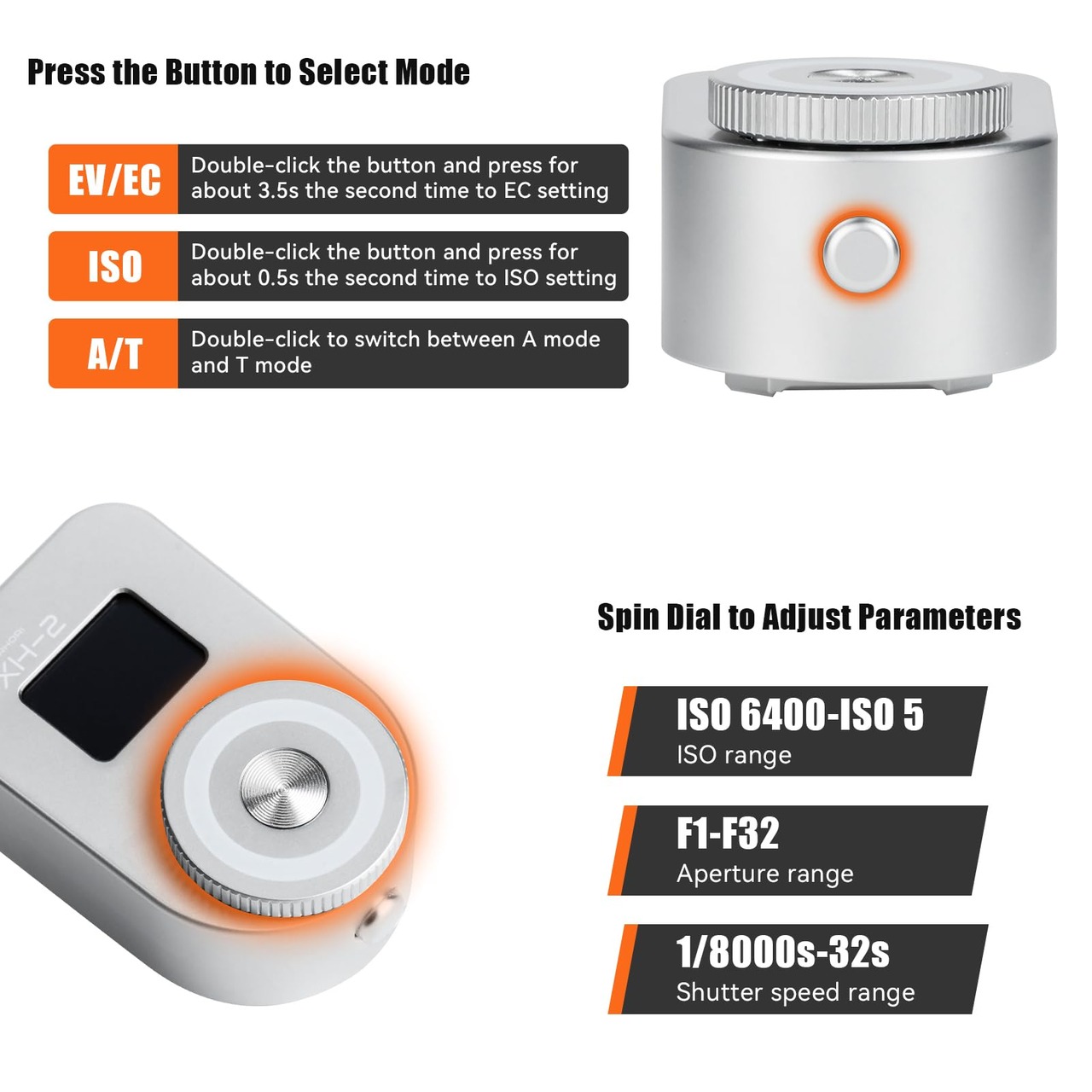 AstrHori XH-2露出計 撮影用メーター 40速シャッター速度 コールド/ホットブーツ固定 連続測光可能約10時間(銀色)