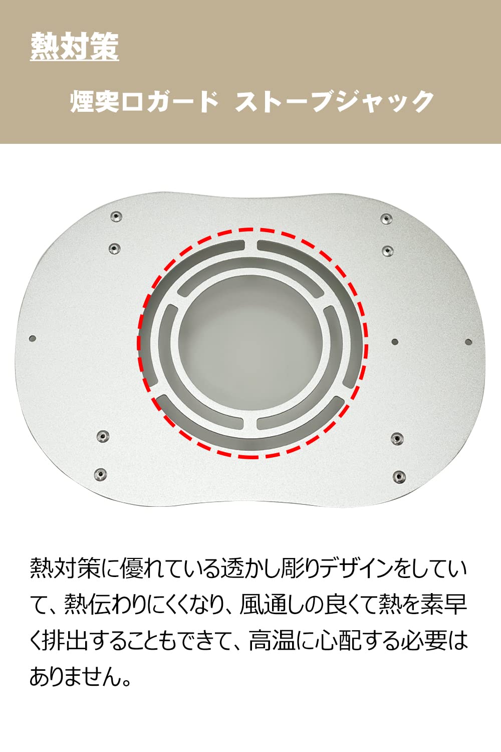 【熱対策】煙突口ガードにより、煙突と布が直接触れることはないってわけです!煙突が固定され、テントが火傷するのを防ぎます。 より安全となります。 熱対策に優れている透かし彫りデザインをしていて、熱伝わりにくくなり、風通しの良くて熱を素早く排出することもできて、高温に心配する必要はありません