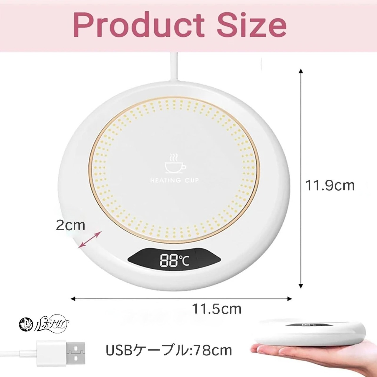 ルボナリエ カップウォーマー usb コーヒーウォーマー 保温コースター USB 3段階切り替え 自動電源オフ 8時間 55℃ 65℃ 75℃ (ホワイト)