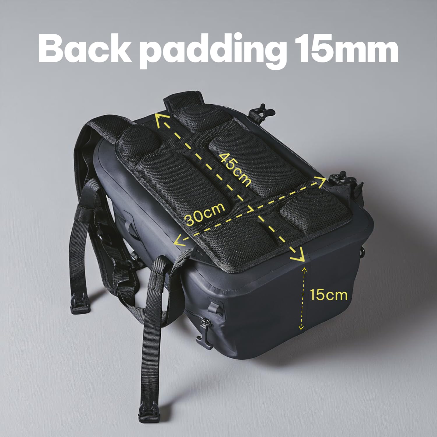 防水・耐衝撃・装着性に優れながら、 通勤にもツーリングにも自然に馴染むミニマルなデザイン。 ビジネスリュックとしても、アウトドアギアとしても活躍します。