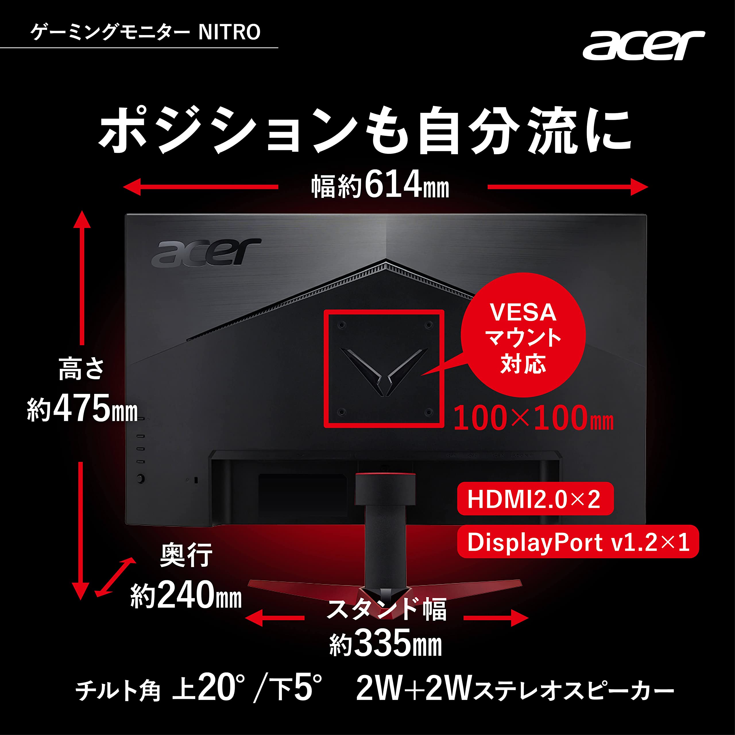 Acer Nitro ゲーミングモニター 27インチ IPS 非光沢 フルHD 0.5ms 240Hz HDMI (280Hz DisplayPort/オーバークロック) AMD FreeSync Premium VESA DisplayHDR 400 スピーカー内蔵 VESAマウント対応 チルト VG271Zbmiipx