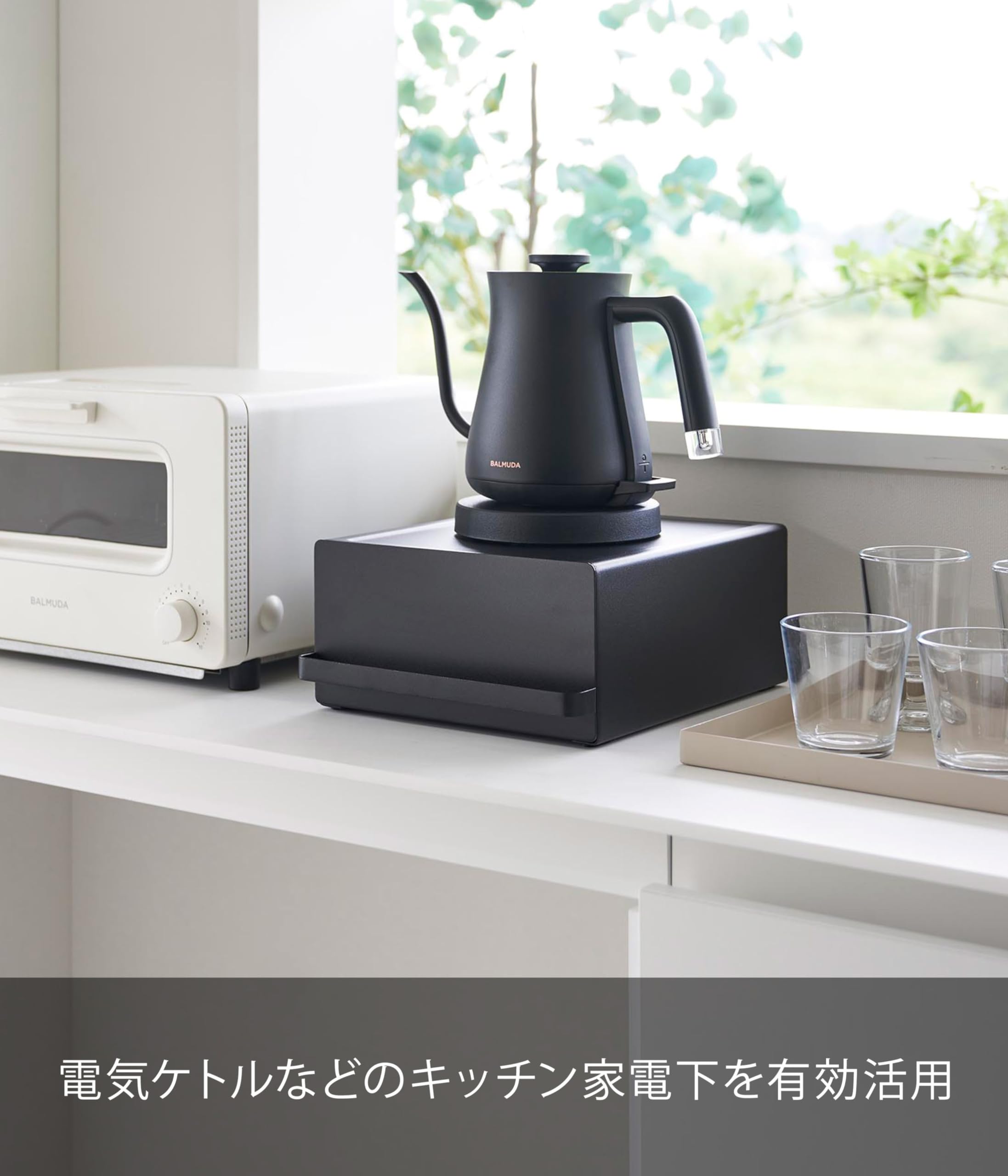 電気ケトルやコーヒーメーカーの下を有効活用!引き出し付きなので小物も収納できるキッチン家電下ラック。