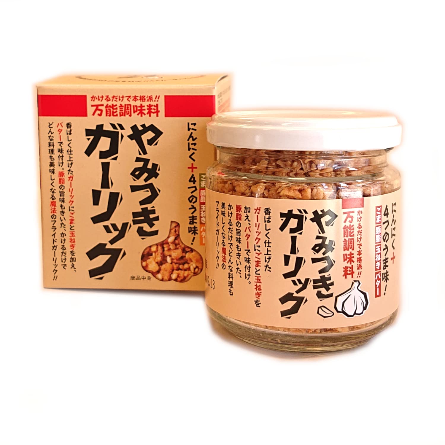 おいしさリニューアル。 香ばしく仕上げたガーリックにゴマと玉ねぎを加え、バターで味付けしました。 肉かすの旨味がきいた本格派フライドガーリック!! ガーリックライスの他、ラーメン、ステーキ、サラダ等お好きな料理に、さっとひとふり!! パスタに混ぜて、ペペロンチーノに加えれば、味にパンチがでます!! 使いたい時にすぐ使える簡単・便利な調味料です。