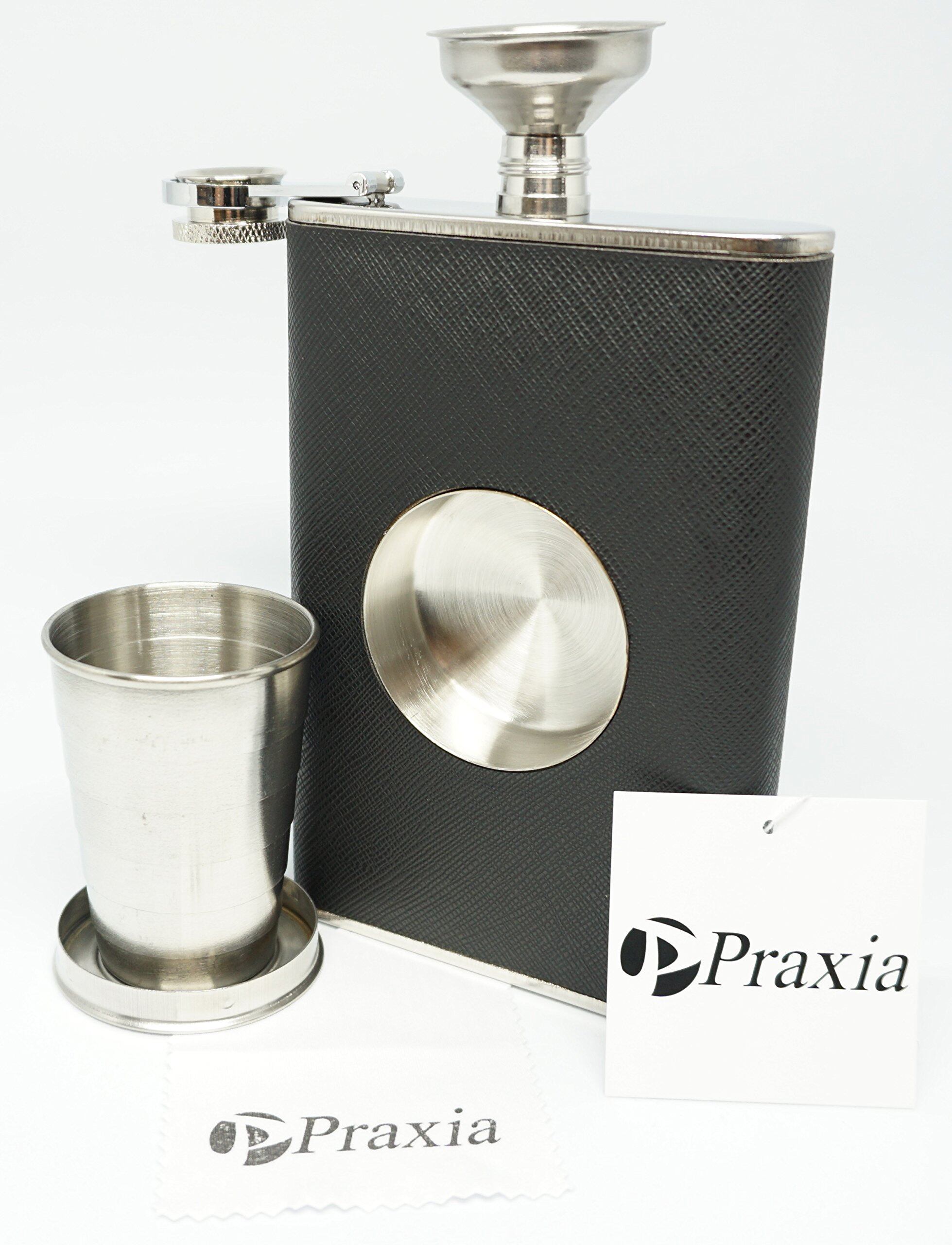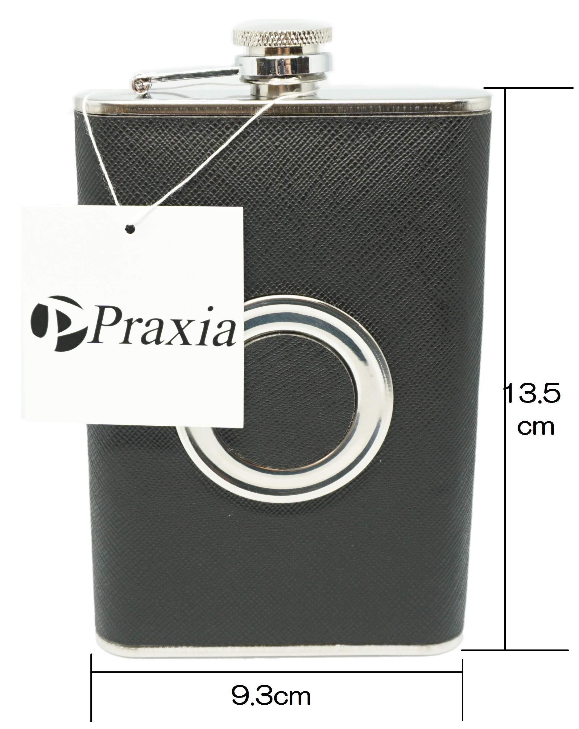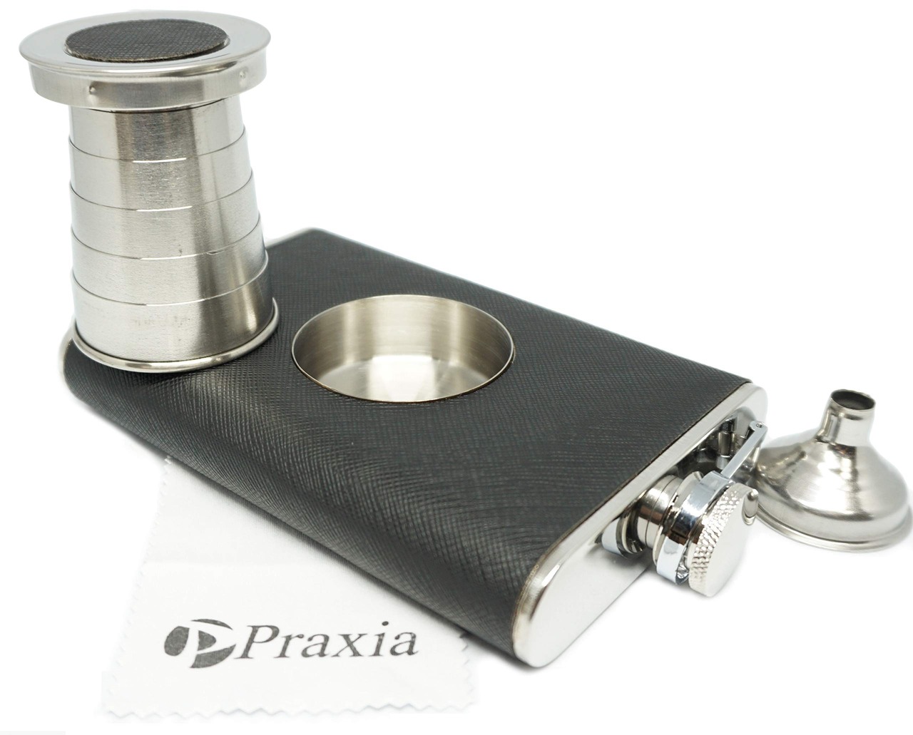 Praxia スキットル コップ 折り畳み 収納 アウトドア 8オンス 220ml (ブラック) 【ロゴ入り布袋/当店クリーニングクロス/漏斗 付属】