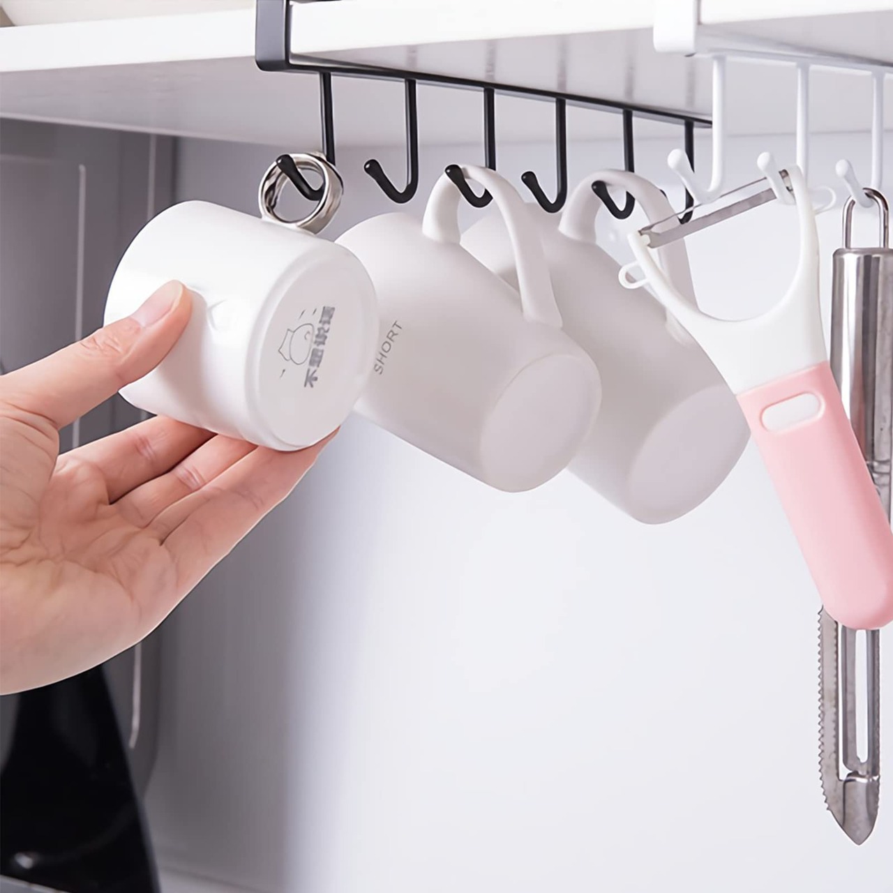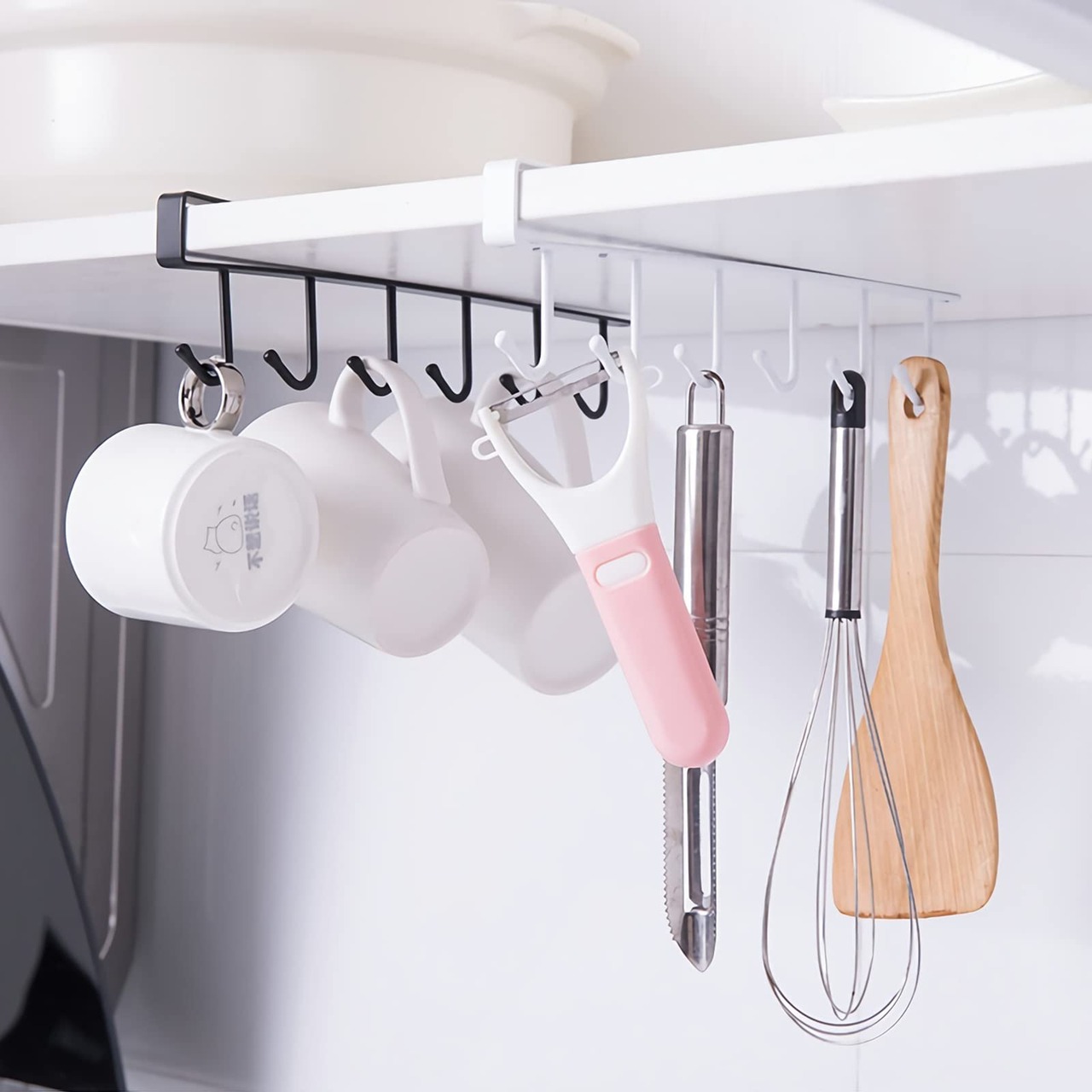 5.【使いやすい】キッチン フック 戸棚下釘やネジ用の穴がありません。 吊り下げ式キャビネットに差し込むだけで、すぐに使用できます。 小物も綺麗に収納できます。