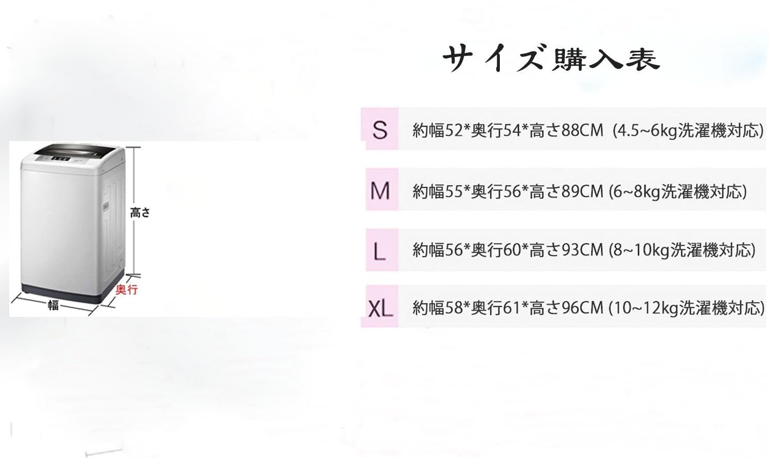 【商品情報】 素材:厚手オックスフォード生地、カラー : スーパー厚シルバー、S、M、L、XL、四つのサイズ選択可。Sサイズ:52*54*88cm、洗濯4.5ー6㎏の洗濯機に適用です。