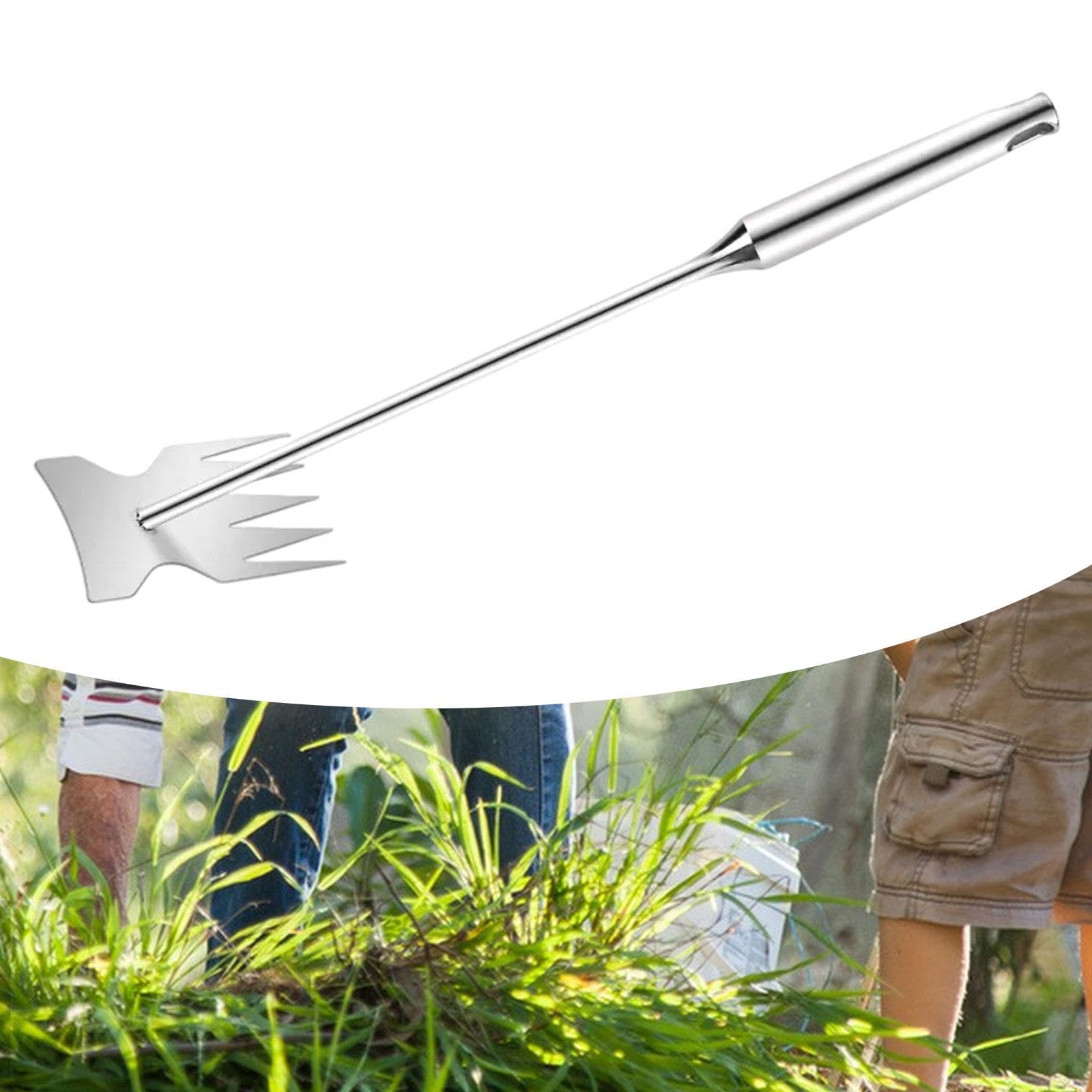 LOL-FUN 【2025新開発・農具】雑草除去ツール 掘り起こし道具 熊手 ステンレス鋼 草抜き 雑草ブラシ 草取りヅメ 除草ツール 雑草削り 雑草抜き ガーデニング 草取り道具 雑草対策/お庭のメンテナンス/畑の草取り用 園芸用品 多機能省力除草鍬 42CMX6CMX12CM