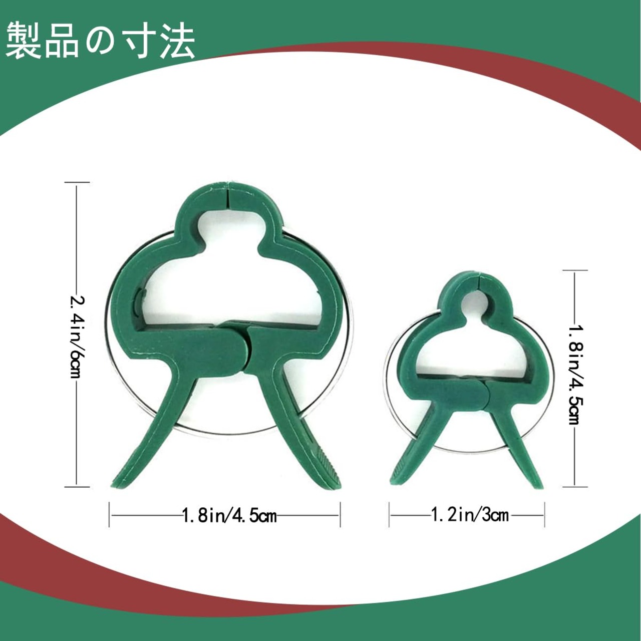 【製品仕様】:プラスチック 【サイズ】:L:4.5*6cm、S:3*4.5cm 【セット内容】:Lサイズ*20個、Sサイズ*20個、支柱にクリップするだけ!野菜や花をかんたんに支えます。