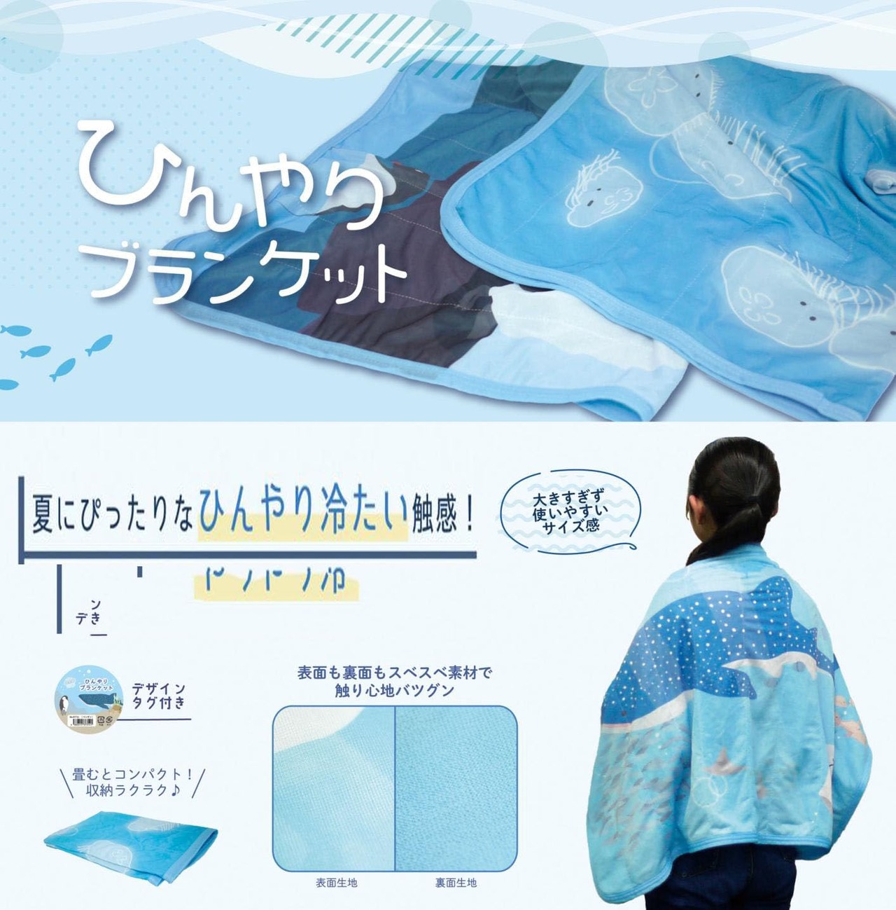 ブランケット 夏用 接触冷感 スベスベ触感 触り心地 ひんやり 冷たい おしゃれ クール ブルー アニマル ジンベエザメ 100×70cm