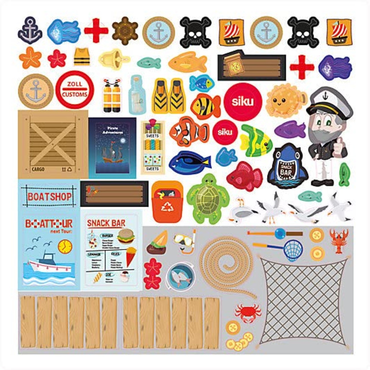 ジク社ミニチュア・カーのスケールに合うようにつくられた、ドイツの街並みがモデルのジオラマSIKU WORLD。組み立てると停泊場から、ボートハウスなど船が行きかう港町が完成します。付属のステッカーをはりつけた自分だけの港町で遊びましょう。