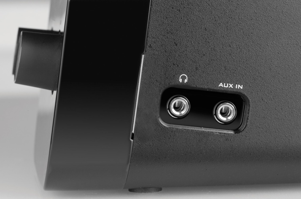 夜間に便利なヘッドフォン出力端子と、デジタルオーディオプレーヤーなどを接続できるAUX入力端子を搭載。パソコン以外にも様々な楽しみ方が広がります。