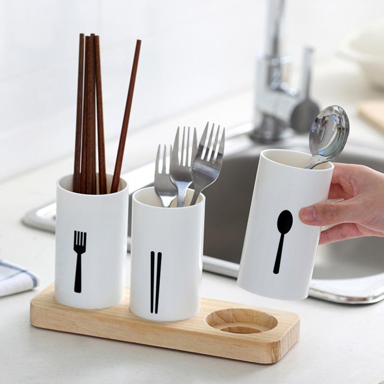 (ステキ ライフ)Suteki Life 箸スタンド 箸立て 水切り スプーン フォーク ナイフ 3個セット 北欧風 キッチン収納 食器収納