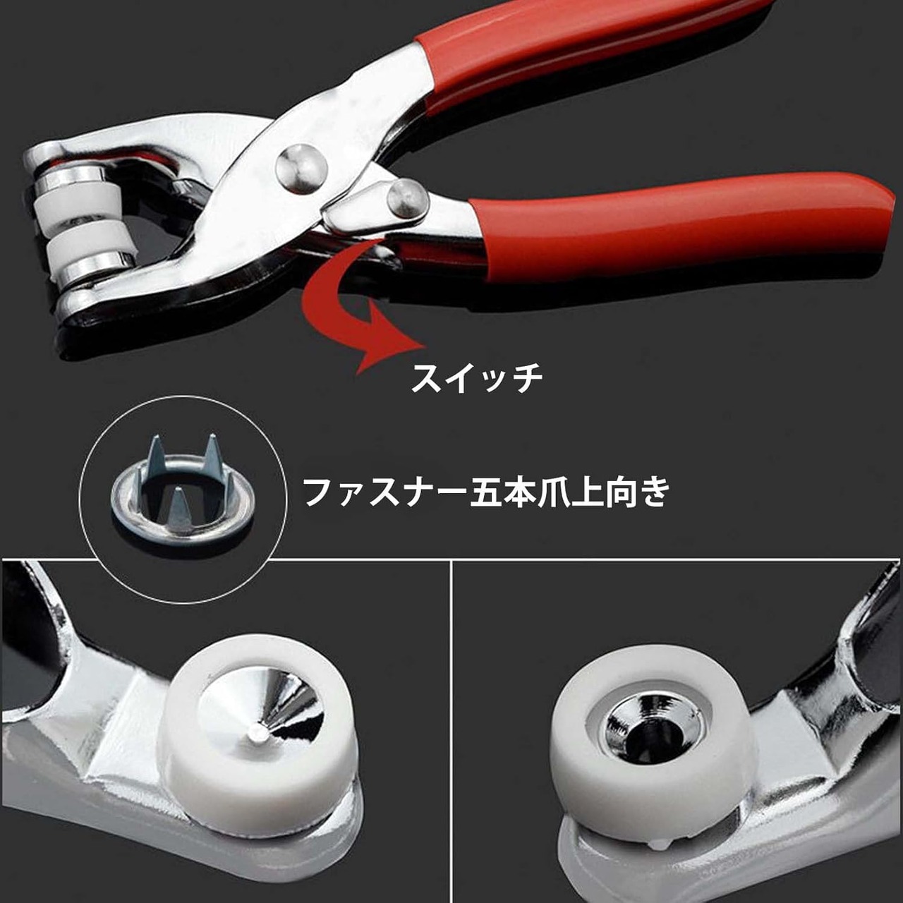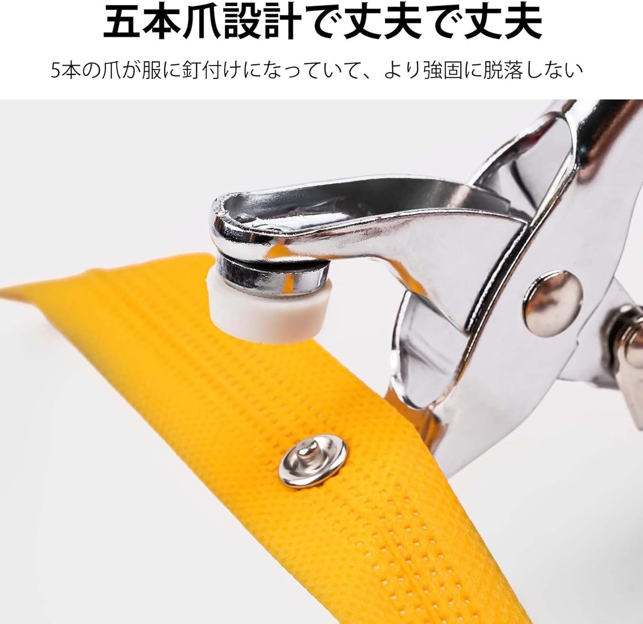 【使いやすい】専用ハンディープレスとプレス クリンプを使用して、簡単にボタンを取り付けることができます。