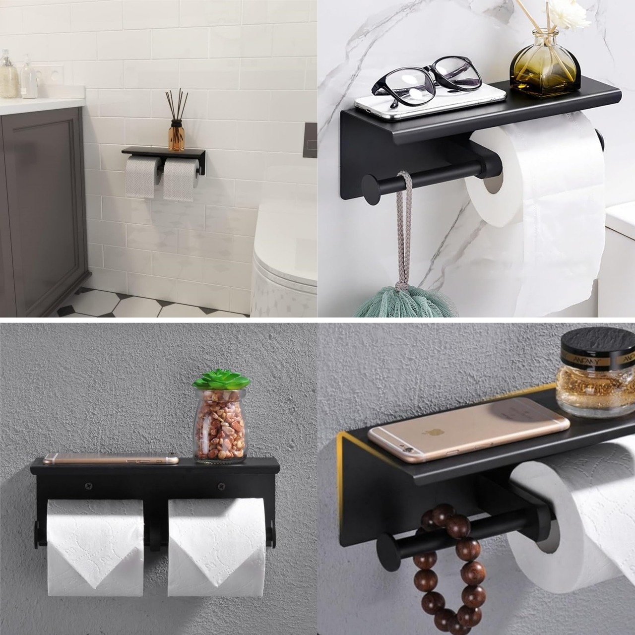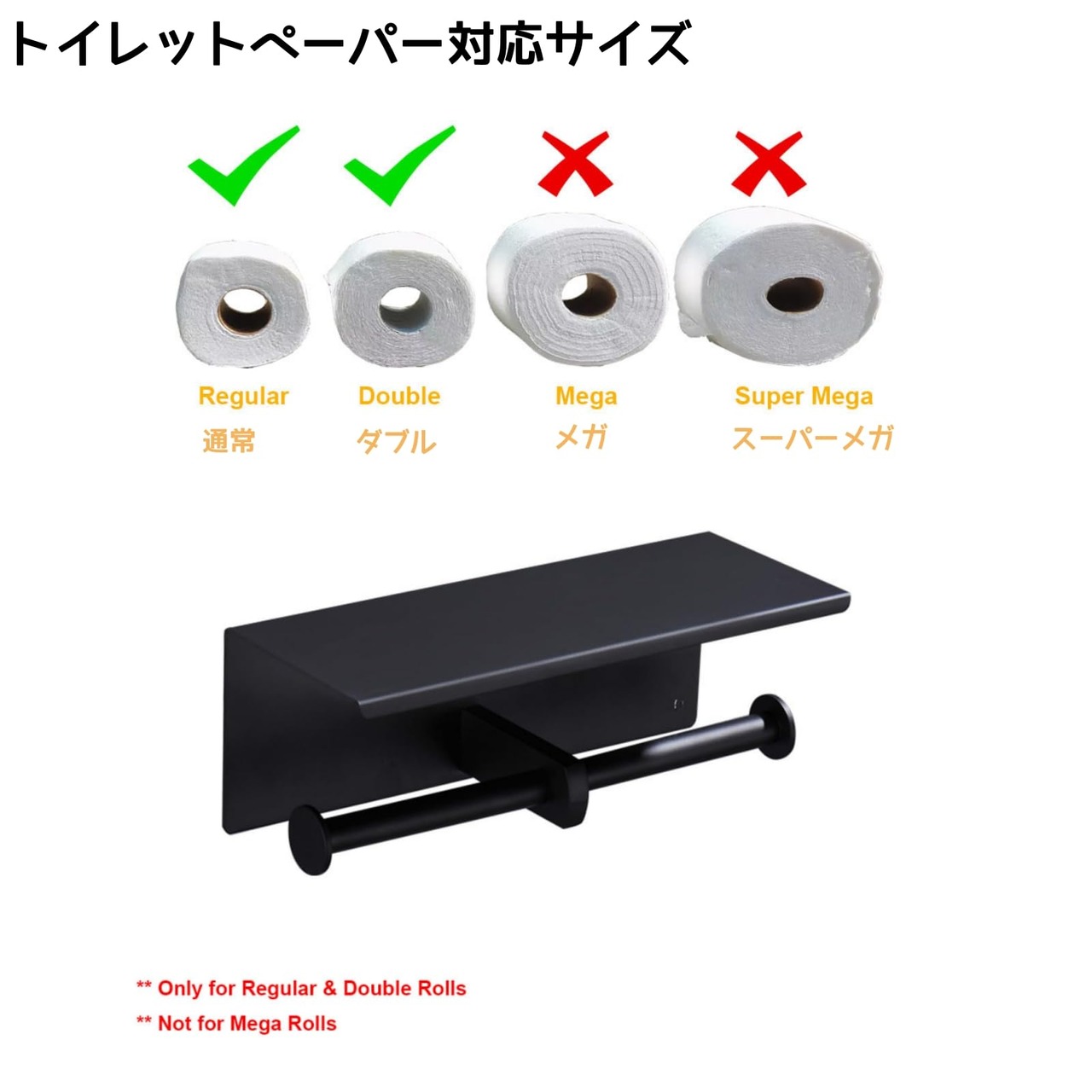 Generic トイレットペーパーホルダー 2連 棚付き 紙巻器 壁取り付けネジ付き ステンレス製 小物置き バスルーム&キッチン用 簡単設置