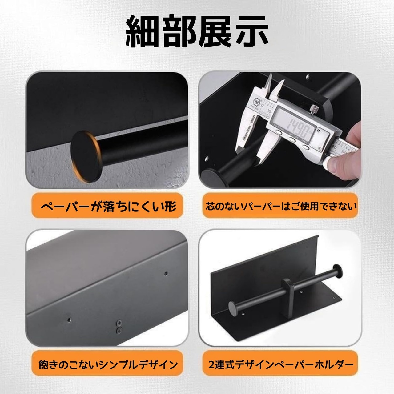 【使いやすさ抜群】棚付きの2連(ダブル)のトイレットペーパーホルダー。天板付なので小物置きとして使えるのでスマホや小物を置くことができます。差し込み式なので差し込むだけで簡単に補充できます。