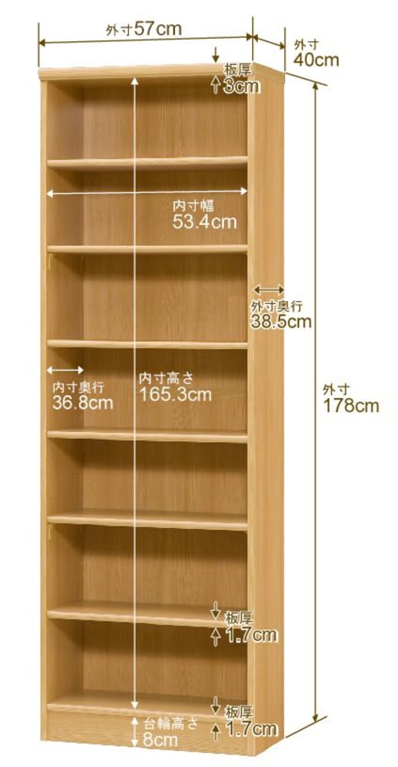 【新登場】日本製 オーダー 本棚 奥行40cm×高さ178cm×幅57cm 標準棚板 ライトナチュラル F 低ホルマリン 幅1cm単位のオーダーマルチラック shelfit/シェルフィット