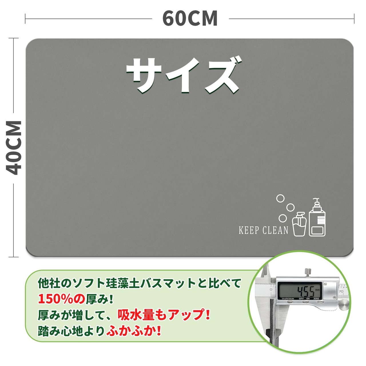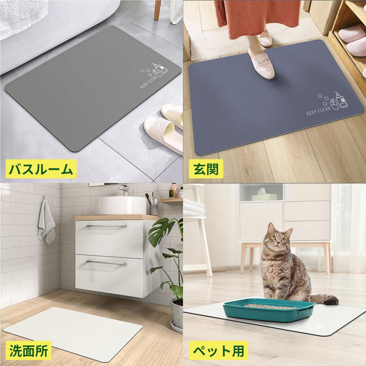 SHINGONE 珪藻土 バスマット ソフト 速乾 吸水 珪藻土マット 柔らかい 40*60cm お風呂マット ノンアスベスト 日本国内認証済み 足拭き 洗える 浴室 脱衣所 洗面所マット 猫用 滑り止め (keep clean,ダークグレー)